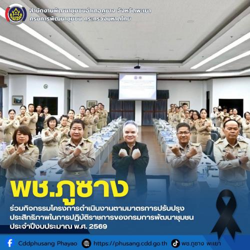 พช.ภูซาง : เข้าร่วมกิจกรรมโครงการดำเนินงานตามมาตรการปรับปรุงประสิทธิภาพในการปฏิบัติราชการของกรมการพัฒนาชุมชน ประจำปีงบประมาณ พ.ศ. 2569